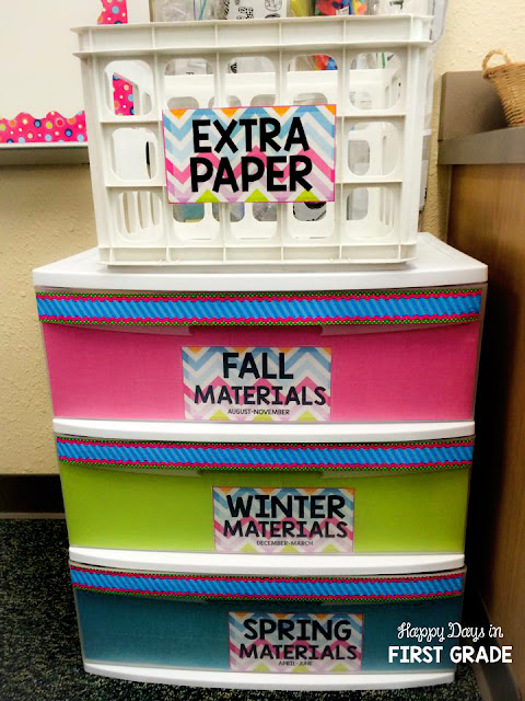 Other Additions: I also made a new label for my “Extra Paper” crate, which I love, love, love and has saved me so many times! Every time I go to make copies, I always make an extra copy just in case one of my students messes up or loses his/her original copy. Whenever this happens, I simply ask my students to go to the extra paper crate to find another copy. A simple idea as this has saved me so many times, and I simply must have one in my classroom! I have also bought a new drawer organizer for my Math Calendar materials to sort them out by seasons. I had the hardest time last year just going through bags and bags of materials to find what I needed. This year, I know that they are separated in the right place and will be readily accessible when needed.