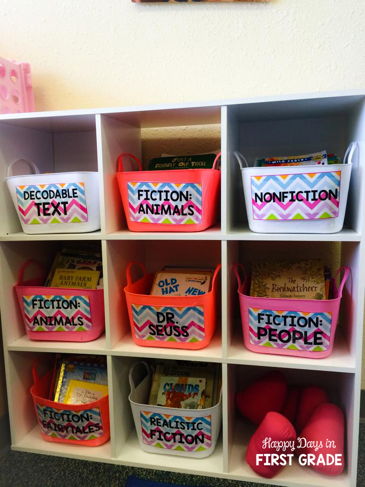 My Classroom Library AFTER:  I snagged up these durable and flexible bins from Target, and they seem to be the perfect fit!  I simplified my classroom library and  also made my own labels.