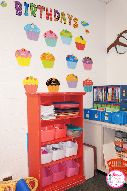 In ten years of teaching, this is my first year ever have round tables!  Can you believe it?!  I have had individual desks in the past, so I am very excited to try this new arrangement!  With limited storage space in the classroom, a lot of the supplies this year will be community property and will be refilled as needed.  No more cleaning out students’ desks and finding work and old pencils and crayons from way back when! 🙂