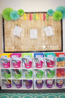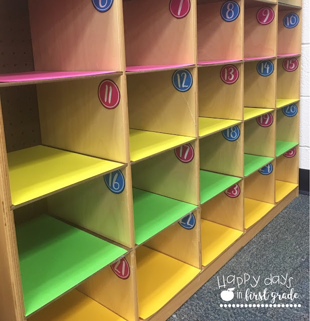 Cubbies: One of the luxuries of our class is that we have our own cubbies! This space has been so important by helping my students keep up with their work. Lined with some bright colored cardstock and cubby tags, these cubbies make me so happy just looking at them! 🙂
