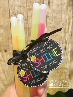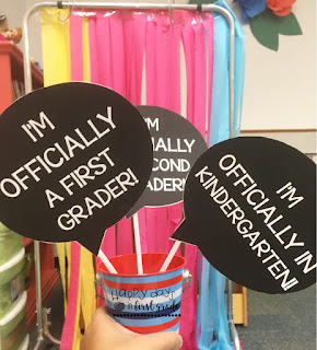 Back to School Photo-Op & Student Gifts: To welcome my new students on Meet-the-Teacher Night, I set up an easy photo op in the back of my classroom! I used my pocket chart holder to hang streamers and created these simple props. I also made additional props for my son who is entering Kindergarten and my students’ siblings who may be entering these grades as well. And of course, I sent each of my students home with a warm hug and a little present to let them know how excited I am to have as my students!