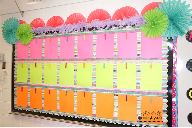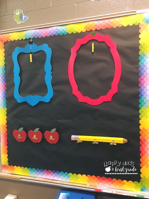 Front Board: I needed a space to highlight the week’s best work and to hang important notes and No Names! This small board by my big whiteboard in front of the classroom was the best space for it! I love how the