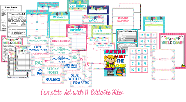 To help your students become familiar with your classroom, use a scavenger hunt and complete some important tasks even before the First Day of School! I have done this for years, and it truly works like a charm! Once the students and their parents have found their seat, thes cavenger hunt placed on their desk will ask them complete certain tasks including dropping off supplies, filling out important forms, and visiting different areas in our school. I have also added for my students to take a picture at our photo op area, find their cubby, Book Box, and different learning areas in our classroom in the past several years. These inclusions have helped my students become even more familiar with our classroom and ease those First Day Jitters greatly for my students. Once all tasks are completed, students are asked to return the form to me and receive a small gift for stopping by! Click to the image below for the complete set of Meet-the-Teacher Night Packet including EDITTABLE forms, signs, and printables!
