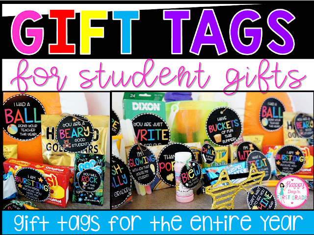 Speaking of student gifts, here’s what I gifted my students at Meet-the-Teacher Night last year after they turned in their Scavenger Hunt! These were super easy to put together. I simply bought a handful of glow sticks and tied two together with black ribbon along with these tags. They were super excited to receive these and were even more excited for the First Day of School! For the complete set of Student Gift Tags for the entire year, scroll down and click to the images below.