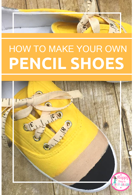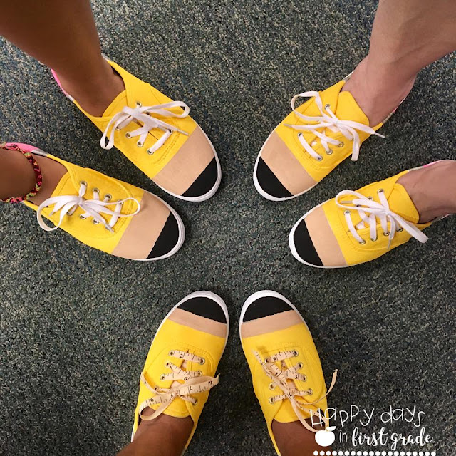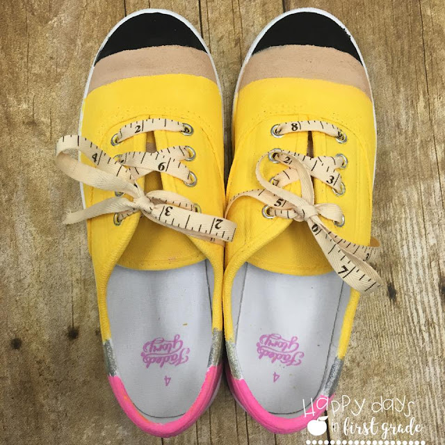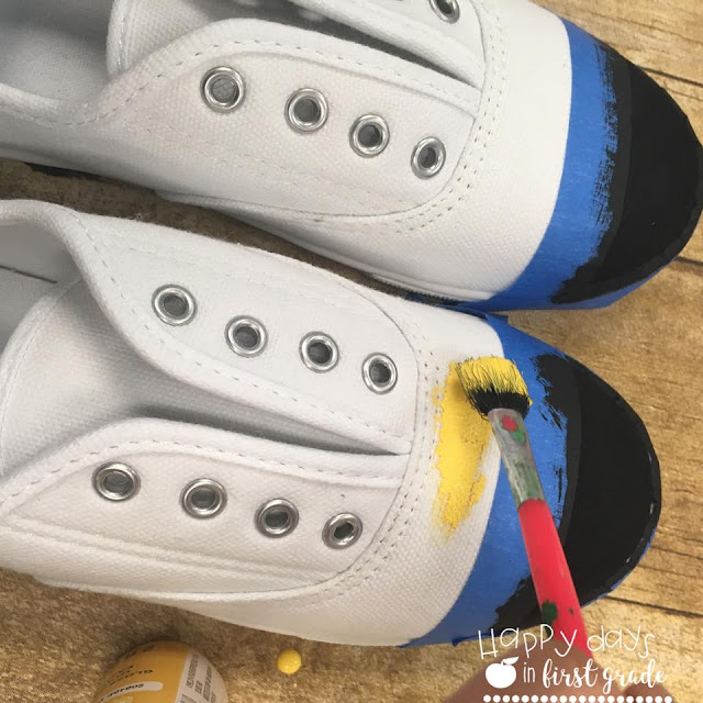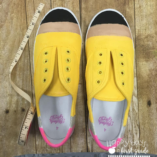 Step 3: Paint the middle section of the shoes yellow for the body of the pencils.