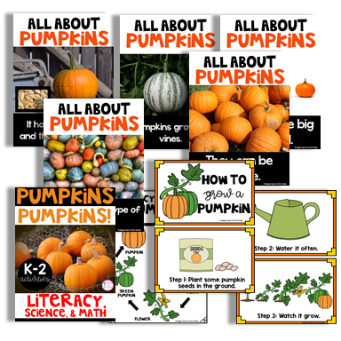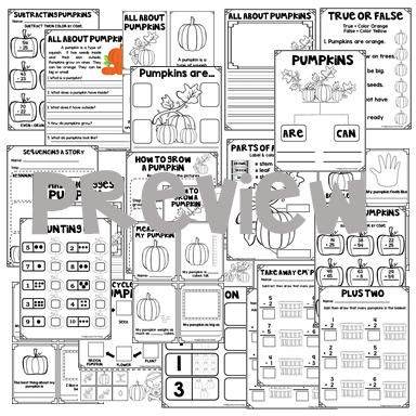 2. PUMPKINS, PUMPKINS! This newly updated 32-page unit for Kindergarten, 1st, and 2nd graders includes math, literacy, and science activities and is all that you need to help introduce and explore pumpkins! From facts on pumpkins, life cycle of a pumpkin, using the 5 senses to explore pumpkins to writing all about them. This packet is easy to use and NO PREP is NEEDED!!! Simply print and you are ready to teach!