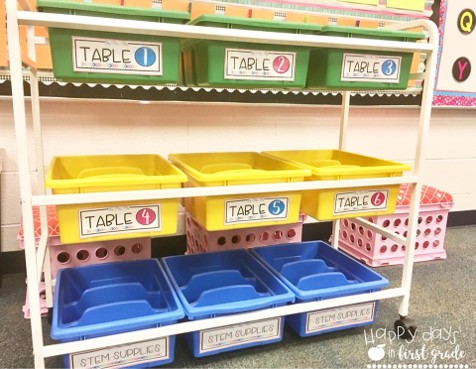 I always make copies a week ahead and then immediately store them in these Sterilite Drawers with the days of the week labeled on them.  No need to go through piles and piles of papers to find the ones that I need.  I also use the Mini Drawers to store all of my supplies.  I love that everything that I need is right at my Teacher Area, and the labels have saved me so much time to focus on the kids and instruction.